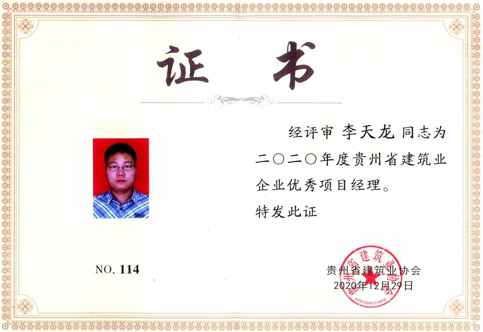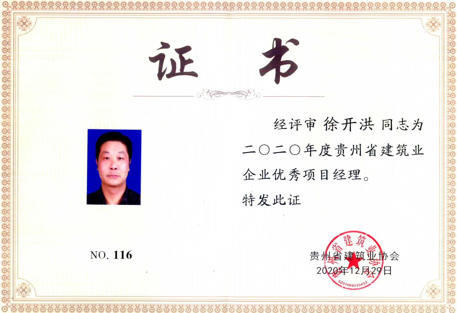 2020年度貴州省建筑業(yè)企業(yè)優(yōu)秀項(xiàng)目經(jīng)理
