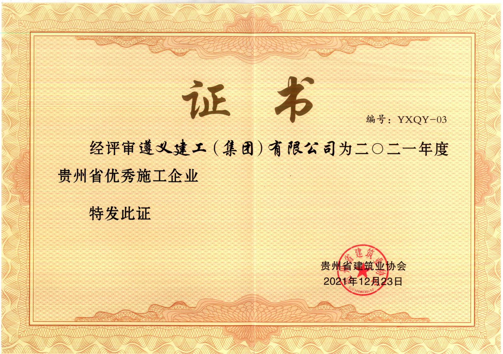 2021年10月,貴州省建筑業(yè)協(xié)會(huì)開展“2021年度貴州省優(yōu)秀施工企業(yè)”;評(píng)選活動(dòng),對(duì)省內(nèi)施工企業(yè)的經(jīng)濟(jì)效益、社會(huì)效益、經(jīng)營(yíng)管理等各方面進(jìn)行綜合考量,于2021年12月23日,公布了評(píng)選結(jié)果。